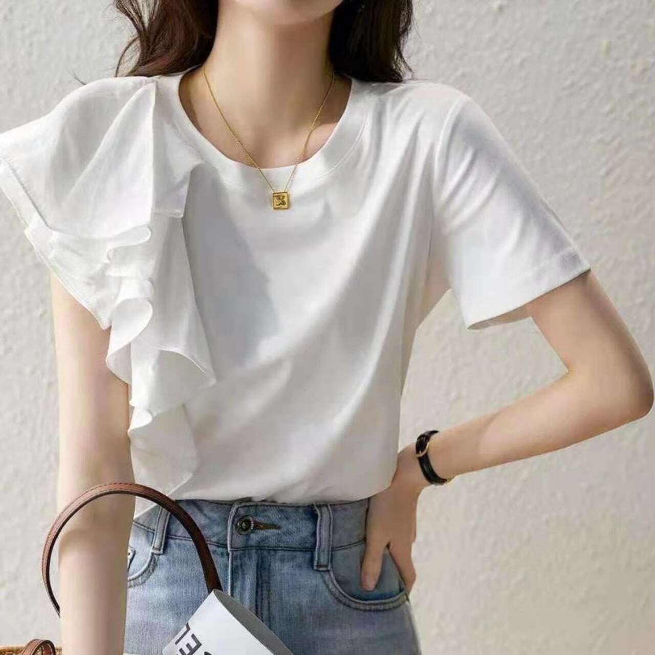 着丈60.5 /胸囲101.4 /肩幅40.5 /フリル袖丈19.5 /半袖丈35 cm